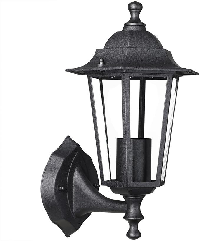 Bring classic charm and reliable outdoor lighting to your home with this elegant wall lantern. Designed in a timeless traditional style, it features a durable black frame and clear glass panels that beautifully showcase the bulb inside. With an IP65 weatherproof rating, this light is suitable for outdoor use, offering protection against rain and moisture. Perfect for illuminating entrances, patios, gardens, or pathways, it combines both style and practicality.